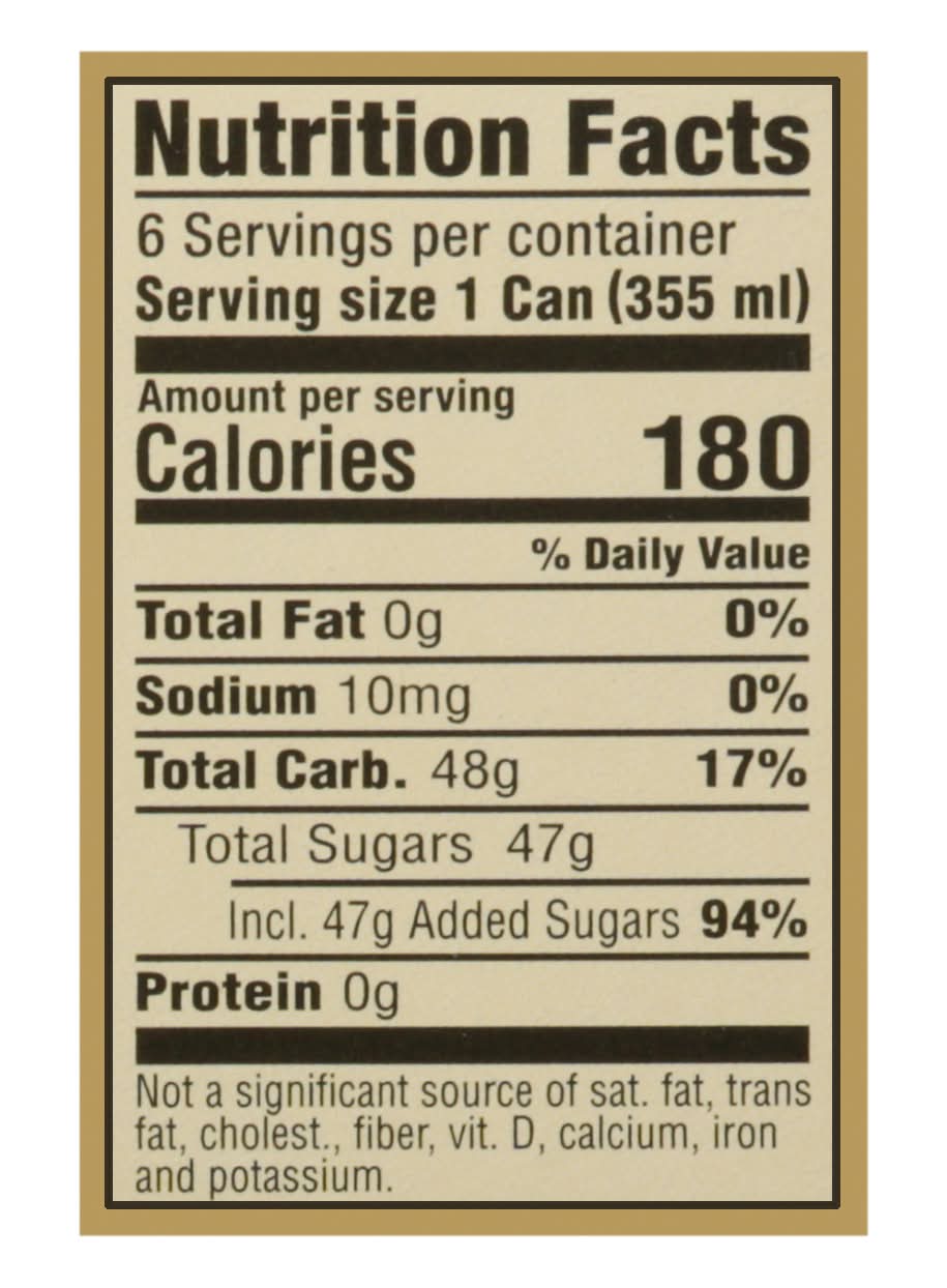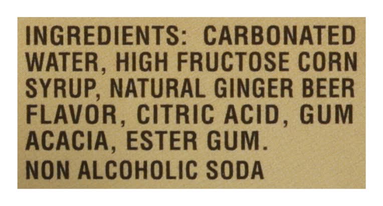Ingredients: Carbonated Water, High Fructose Corn Syrup, Natural Ginger Beer Flavor, Citric Acid, Gum Acacia, Ester Gum