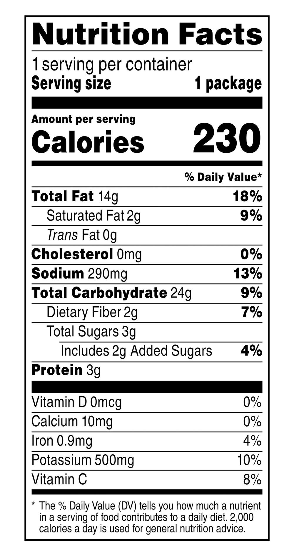 Ingredients: Potatoes, Vegetable Oil (Canola, Corn, Soybean, and/or Sunflower Oil), Sugar, Salt, Dextrose, Maltodextrin (Made from Corn), Molasses, Torula Yeast, Natural Flavors, Onion Powder, Spices, Tomato Powder, Paprika, Corn Starch, Paprika Extracts, Caramel Color, Yeast Extract, Garlic Powder, and Mustard Seed Oil Contains: Mustard, Soybeans