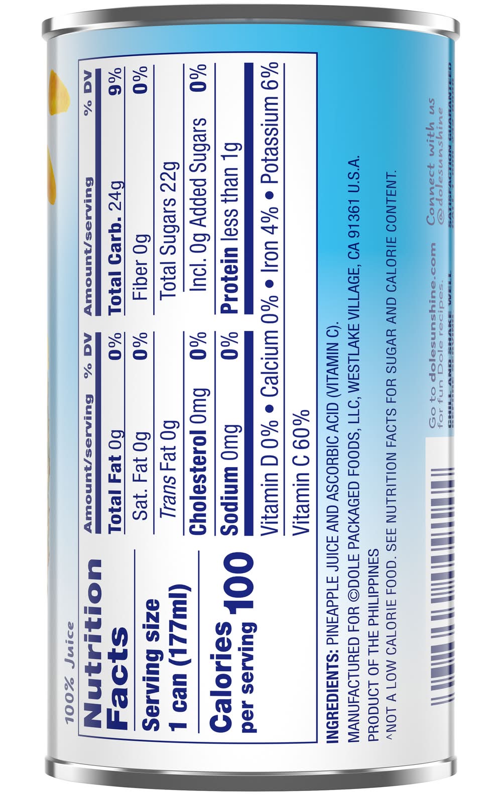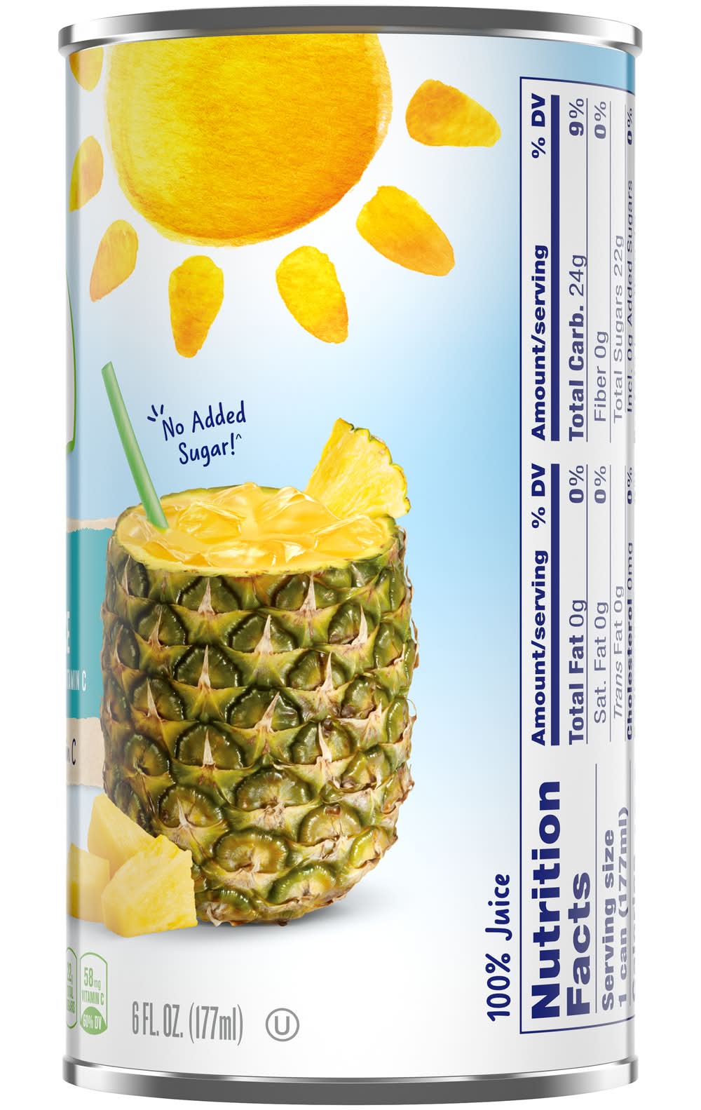 Ingredients: Pineapple Juice, Ascorbic Acid (Vitamin C), Vitamin E, and Vitamin A