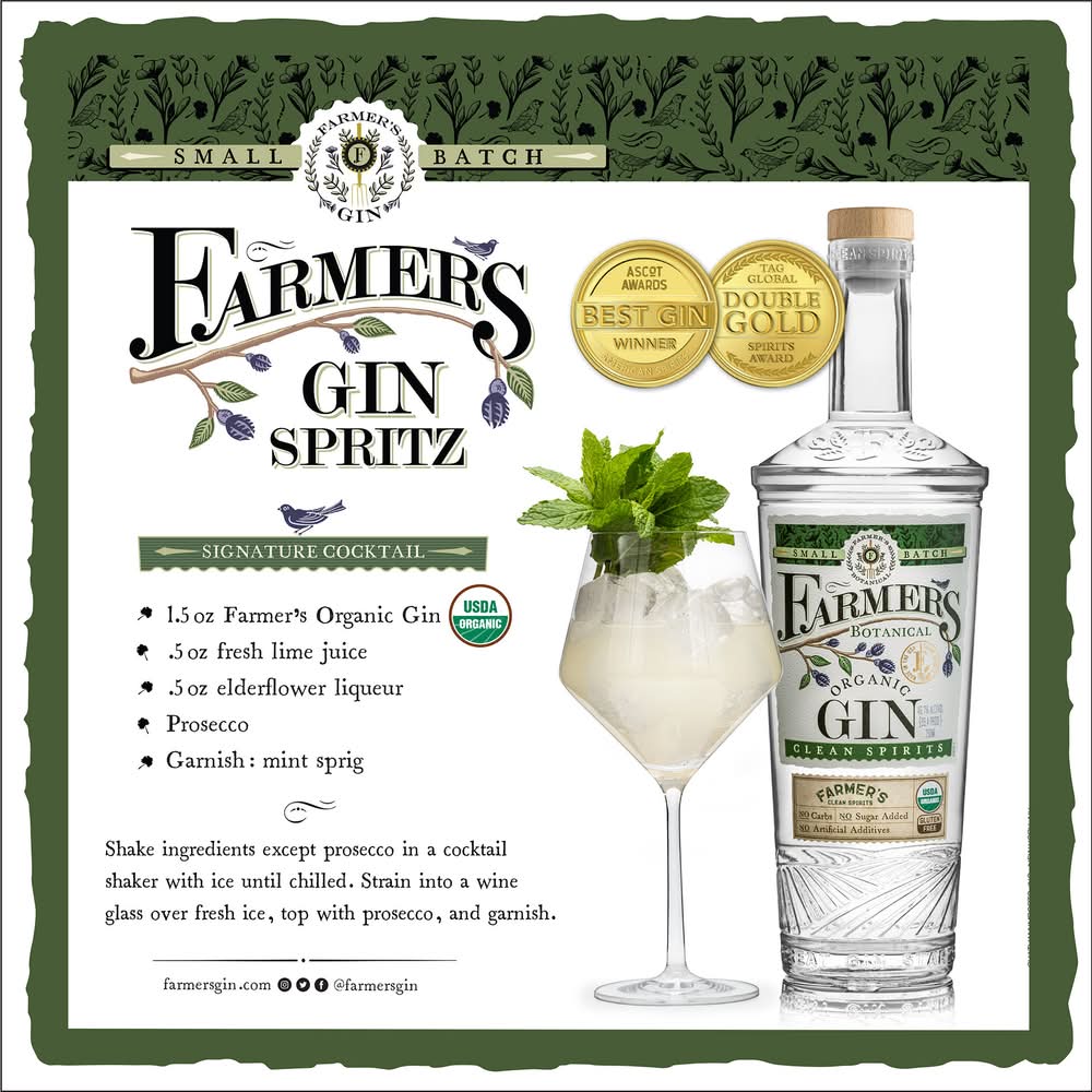 Certified organic by the USDA, Farmer’s Organic Gin possesses a unique taste due to its balanced selection of botanicals including hemp seed, which brings a nutty, savory character to the gin. Alcohol by volume: 46.7%