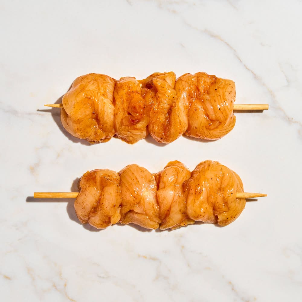 Spice up your night with the bold and delicious Our skewers come with tender, juicy pieces of chicken with a zesty, smoky seasoning. These are the perfect balance of heat and flavor. Perfect to grill, whether it's a quiet dinner for two or a gathering of friends.