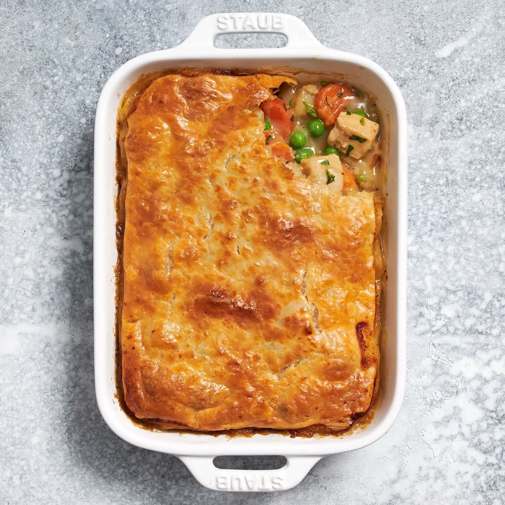 Features a flaky, all-butter crust atop tender sous vide white meat chicken and chunky vegetables in a creamy gravy. With lower sodium per serving than other store-bought options, It's made without artificial flavors, coloring, phosphates or MSG. Take this Chicken Pot Pie from the oven to the table in about an hour , no prep time needed. Serves 3-5 people. Size: 1 Piece