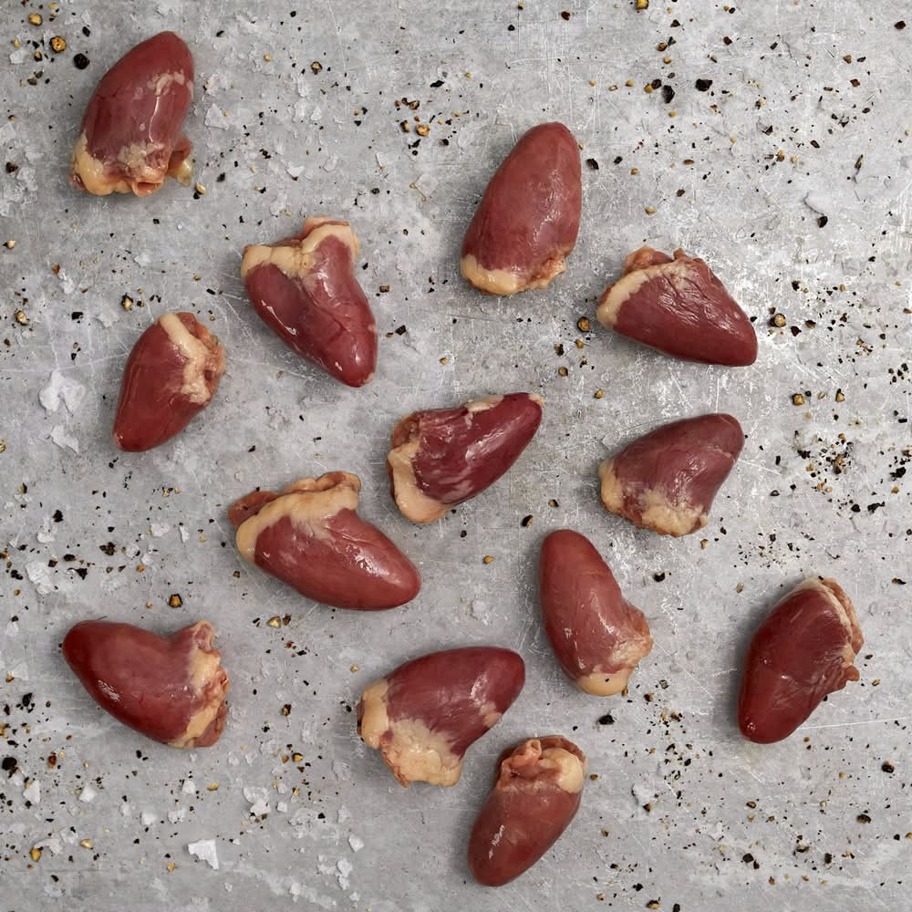 This all-natural chicken hearts are good for all kinds of recipes and uses. Chicken hearts have a low calorie count relative to their weight and are a good source of protein, iron and zinc. When prepared well, they taste like flavorful dark meat. Lots of people also use chicken hearts in homemade meals for their pets! These hearts were never given hormones, steroids or antibiotics, so you can feel good about what you're serving on your table (or to your pooch). No matter how you cook them, you'll enjoy bite after juicy bite. Size: Varies