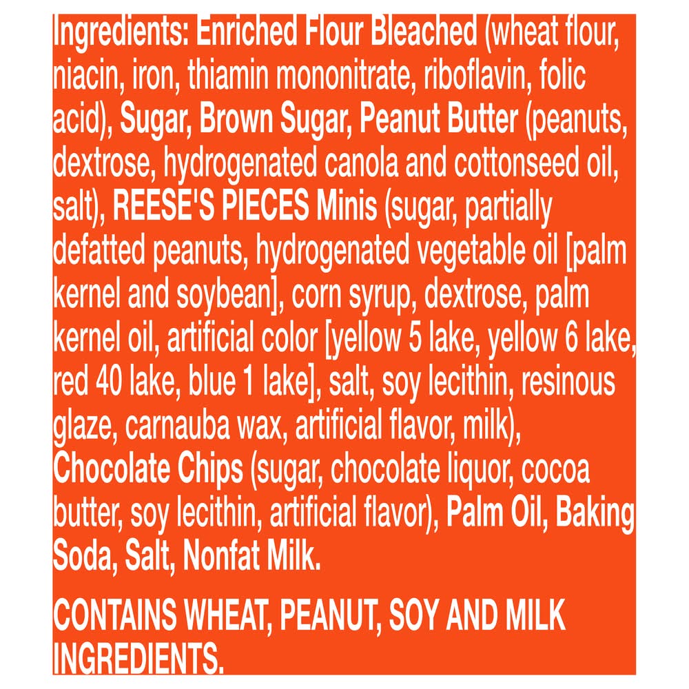 Ingredients: Enriched Flour Bleached (Wheat Flour, Niacin, Iron, Thiamin Mononitrate, Riboflavin, Folic Acid), Sugar, Brown Sugar, Peanut Butter (Peanuts, Dextrose, Hydrogenated Canola and Cottonseed Oil, Salt), Palm Oil, Baking Soda, Salt Contains: Wheat, Peanuts, Soybeans, Milk, Corn