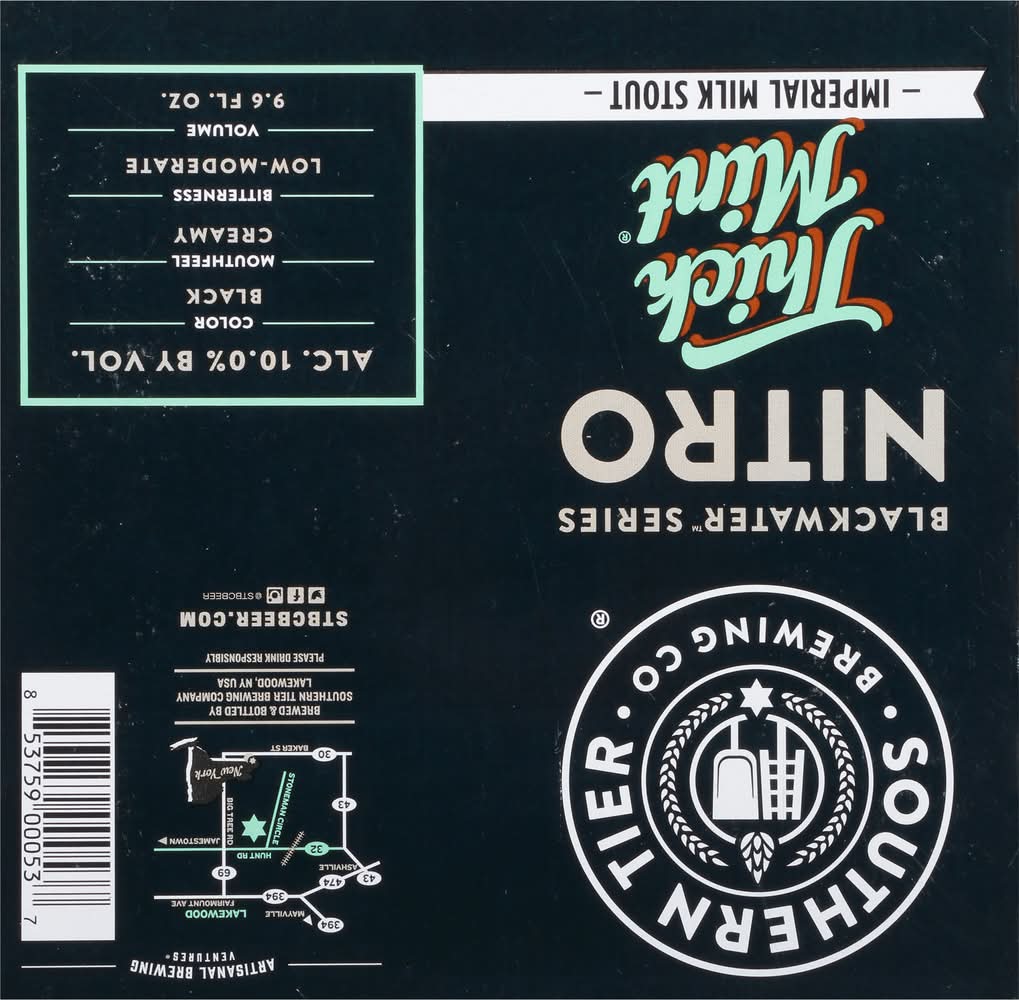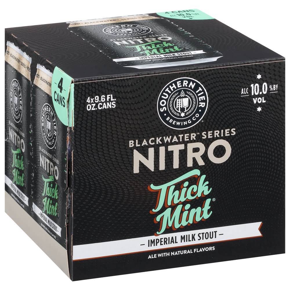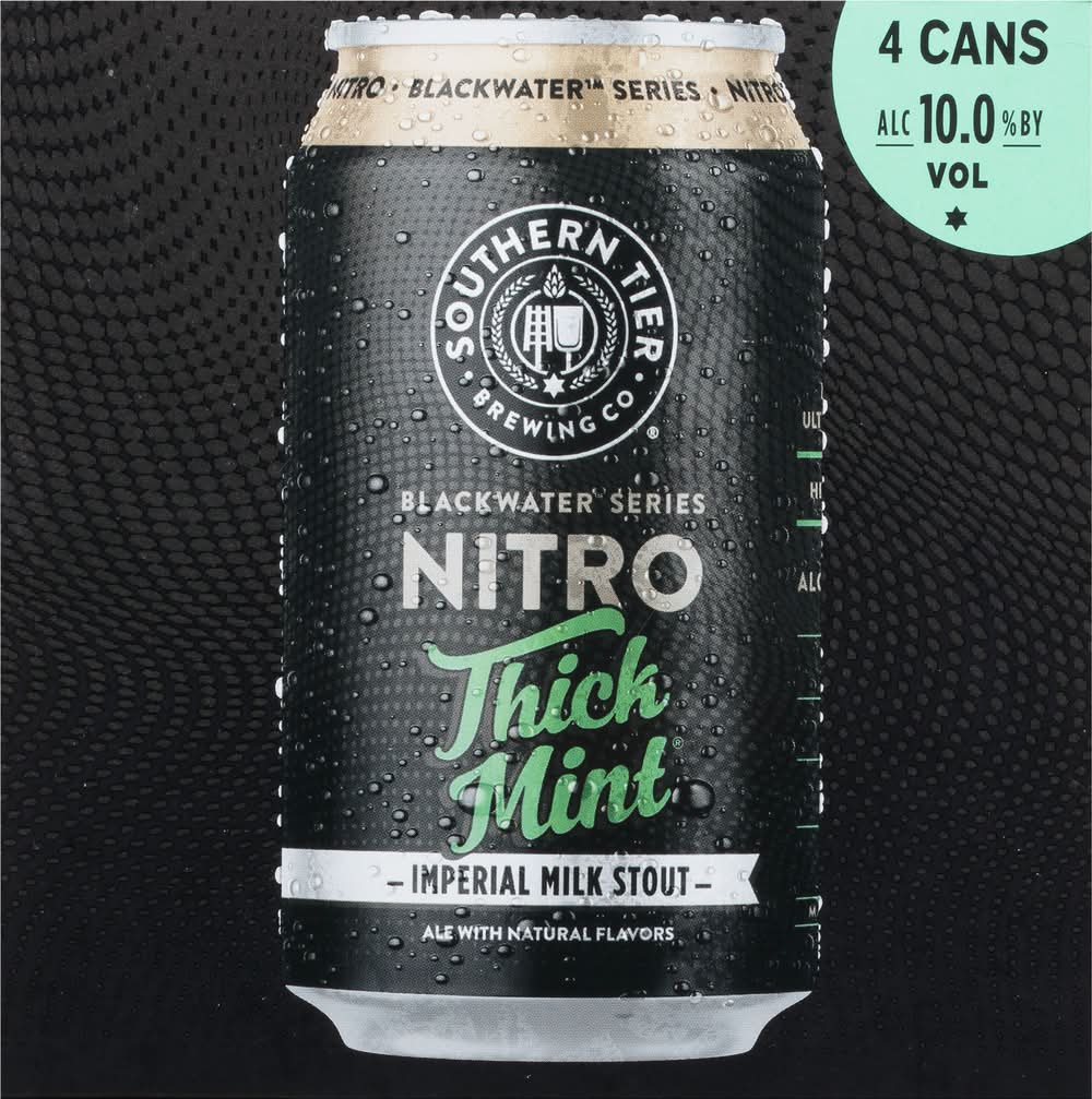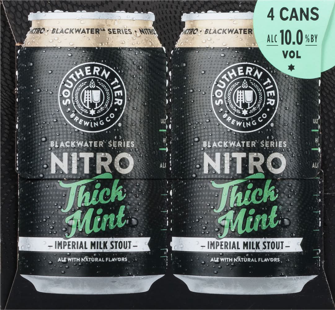 Beer, Imperial Milk Stout, Thick Mint • Brand: Southern tier brewing company • Category: Seasonal beer • Pack size: 4 • Alcohol by volume: 13.13% • Packaging: Reusable