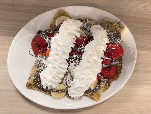 Filled with strawberries, bananas, and nutella. (whip cream upon request)