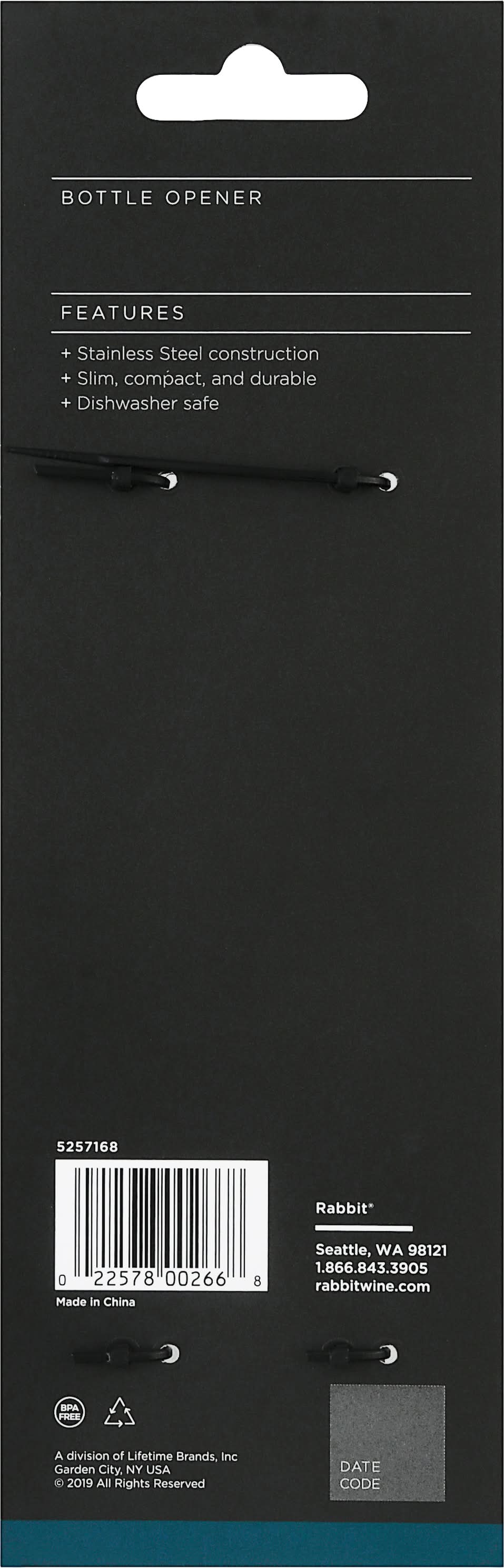 Bottle Opener • Rabbit, Seattle, WA, 98121 • Packaging: Reusable