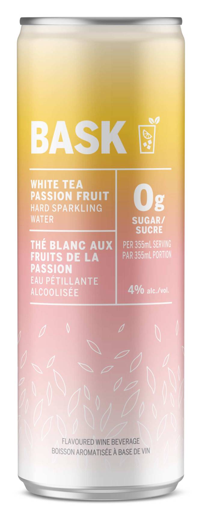 Bask Hard Sparkling Water, White Tea-Passion Fruit (355 ml)