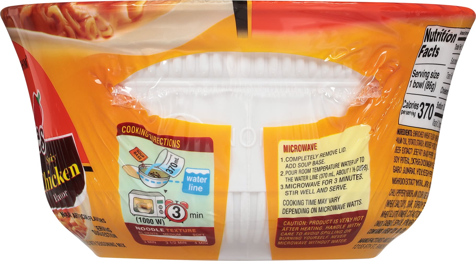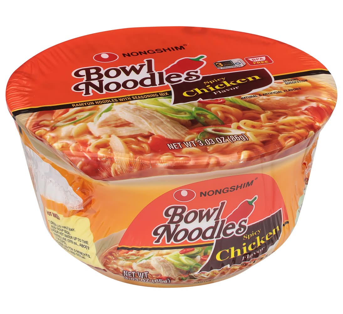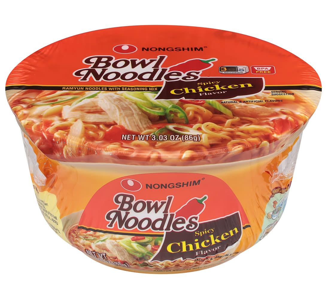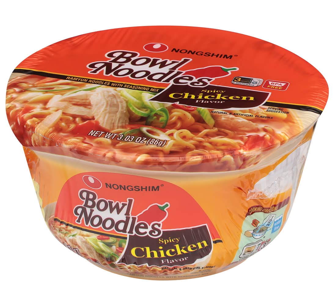 Bowl Noodles, Spicy Chicken Flavor • Brand: Nongshim • Flavor: Spicy chicken • Packaging: Reusable