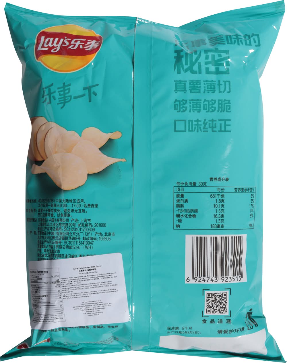 Ingredients: Potato, Vegetable Oil, Crab Flavor Seasoning (Including Edible Essence, 5-Flavor Nucleotide Disodium, Aspartame (Including Phenylalanine)), TBHQ Contains: Crustacean Shellfish, Crab, Soybeans, Gluten, Milk, Crustacean Shellfish, Fish