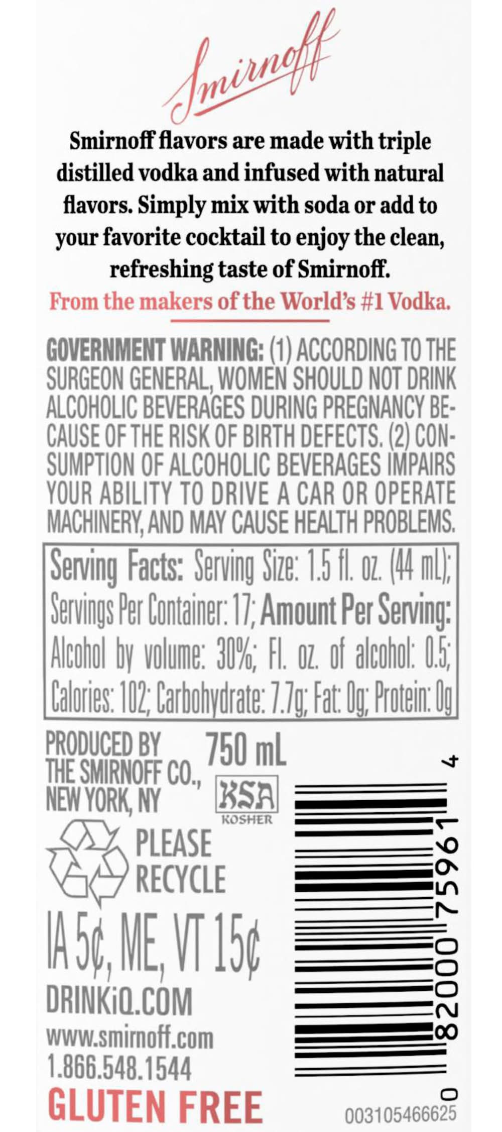 Indulge in the decadent flavor of caramel with Smirnoff Kissed Caramel. Infused with the confectionary taste, this gluten-free and Kosher Certified spirit is perfect for after-dinner drinks and is smooth enough to be enjoyed neat. Perfect for those cozy evenings and dessert pairings, the versatility of Smirnoff adds a layer of decadence to any occasion. • Flavor: Kissed caramel • Alcohol by volume: 30%