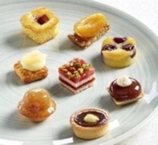 Six (6) light, delicate, and crispy confections. Includes an assortment of apple financier cakes; chocolate hazelnut tarts; crunchy fig praline; pistachio & apricot pastries; rhubarb and cherry sponge cakes; and strawberry and pineapple coconut squares.