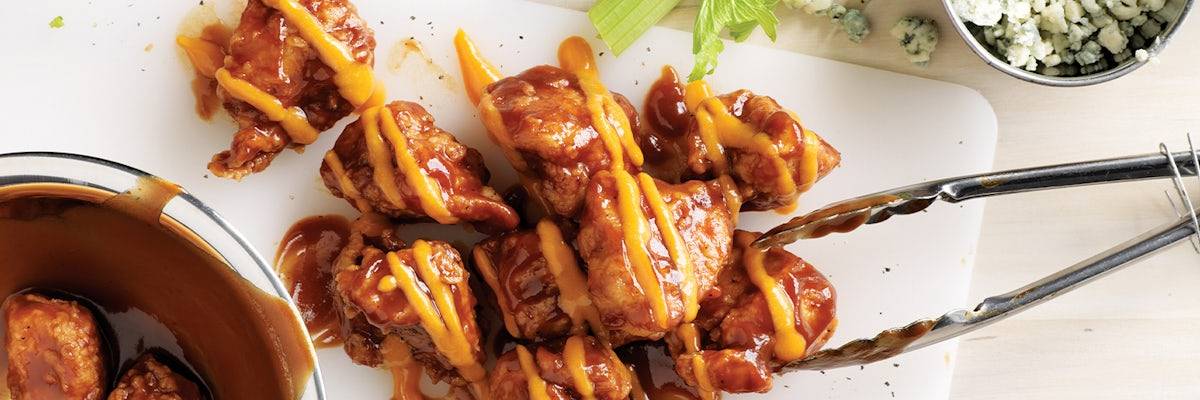 40 wings; serves 8-10. Grab a fork for these fresh, hand-breaded, fried wings. Your napkin just might thank you.