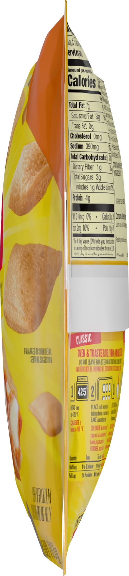 Directions for use: Directions: For food safety and quality follow cooking directions. Cook thoroughly to internal temperature of at least 160 degrees F. Keep frozen until ready to cook. Refrigerate leftovers. Classic: Oven & Toaster Oven: Do not leave toaster oven unattended while cooking product. 1) 425 degrees: Heat oven to 425 degrees F. 2) Place rolls in single layer on baking sheet or toaster oven tray. Bake according to chart. 3) Let stand 2 minutes to complete cooking. Filling will be very hot. Be cautions on first bite. Quantity: Half bag: 11 to 13 minutes oven; 14 to 16 minutes toaster oven. Quantity: Full bag: 14 to 16 minutes; not recommended. Fast: Microwave: Do not leave microwave unattended while cooking product. 1) Place rolls in single layer on microwavable plate. 2) See times below. Microwave on high according to chart. 3) Let stand 2 minutes to complete cooking. Filling will be very hot. Be cautious on first bite. Quantity: 1 serving (6 rolls); 1:00 to 1:15 time on high. Quantity: 2 servings (12 rolls); 2:00 to 2:40 time on high. Directions developed for 1000 watt microwave ovens. Due to differences in microwave ovens, cooking times may need to be adjusted Crispy: Air Fryer: Do not leave air fryer unattended while cooking product. 1) Place up to 25 rolls in single later in air fryer basket. 2) 390 degrees. Cook 4 minutes at 390 degrees F. Remove basket, shake well to mix rolls. Cook on additional 4 minutes. 3) Let stand 2 minutes to complete cooking. Filling will be very hot. Be cautious on first bite. Directions developed using 4-quart air fryer, cooking times may need to be adjusted. Cook thoroughly. Caution: Filling will be very hot! Wait until cool enough to eat. Keep frozen. Storage recommendation: Keep frozen.