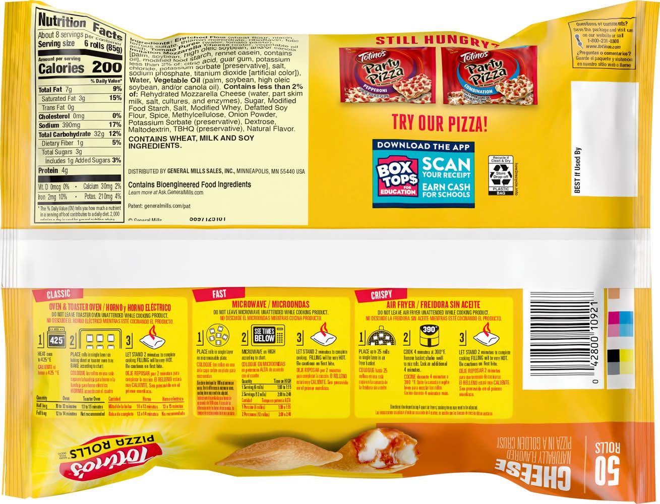 Turn an epic pizza topping into a tasty poppable bite you can enjoy any time. Every serving excites your taste buds with a cheese flavored filling inside bite-sized pockets of goodness, baked to a golden finish. From chill nights on the couch or gaming with friends to hosting a gameday crowd, these Rolls are the perfect savory snack. Pizza Rolls are ready whenever you are. Heat them up in no time with no fuss. Pop 'em in the microwave, oven, or air fryer, following the easy directions on the package. Ideal for teens, keep a stash in your freezer for when they crave a bite before rushing out. Switch things up by serving alongside your favorite dips or sauces. Make these flavorful pizza flavored snack bites an alternative to frozen pizza. Fun to eat, add them to any party spread as an ideal finger food. • Flavor: Cheese • General Mills Sales, Inc., Minneapolis,MN,55440 • Packaging: Reusable