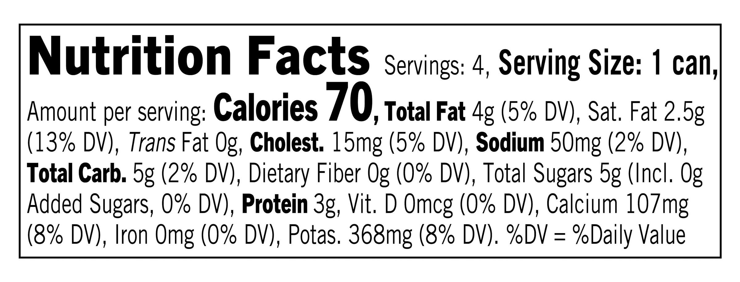 Ingredients: Brewed Espresso Coffee (Water, Coffee), Reduced-Fat Milk, Cream, Sucralose, Acesulfame Potassium Contains: Milk