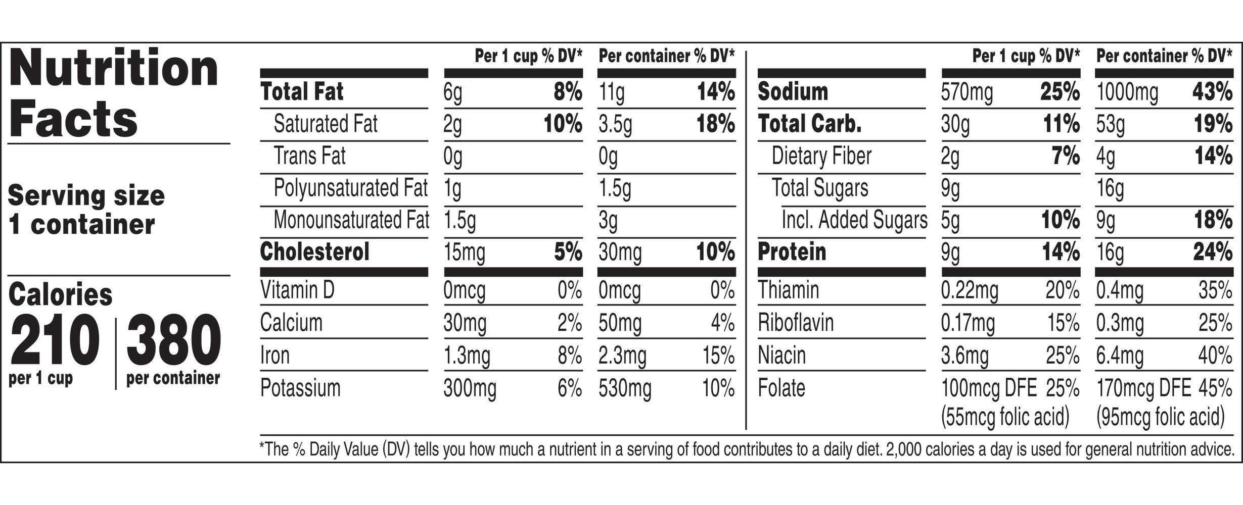 Directions for use: Ready in 3 minutes! Microwave: Microwave ovens vary. Time given is approximate. Uneven microwave heating may cause popping, movement of the bowl and/or splattering. (1) Heat. Covered. In microwavable serving bowl on high 1-1/2 to 2 min. Or until hot. (2) Careful, leave in microwave 1 min. (3) Stir and serve. Stove: Pour pasta into saucepan. Heat. Stirring occasionally, until hot. Promptly refrigerate unused product in separate container. (1) Lift tab to rim. (2) Pull back slowly. Recommend use by date on container. Storage recommendation: Promptly refrigerate unused product in separate container.