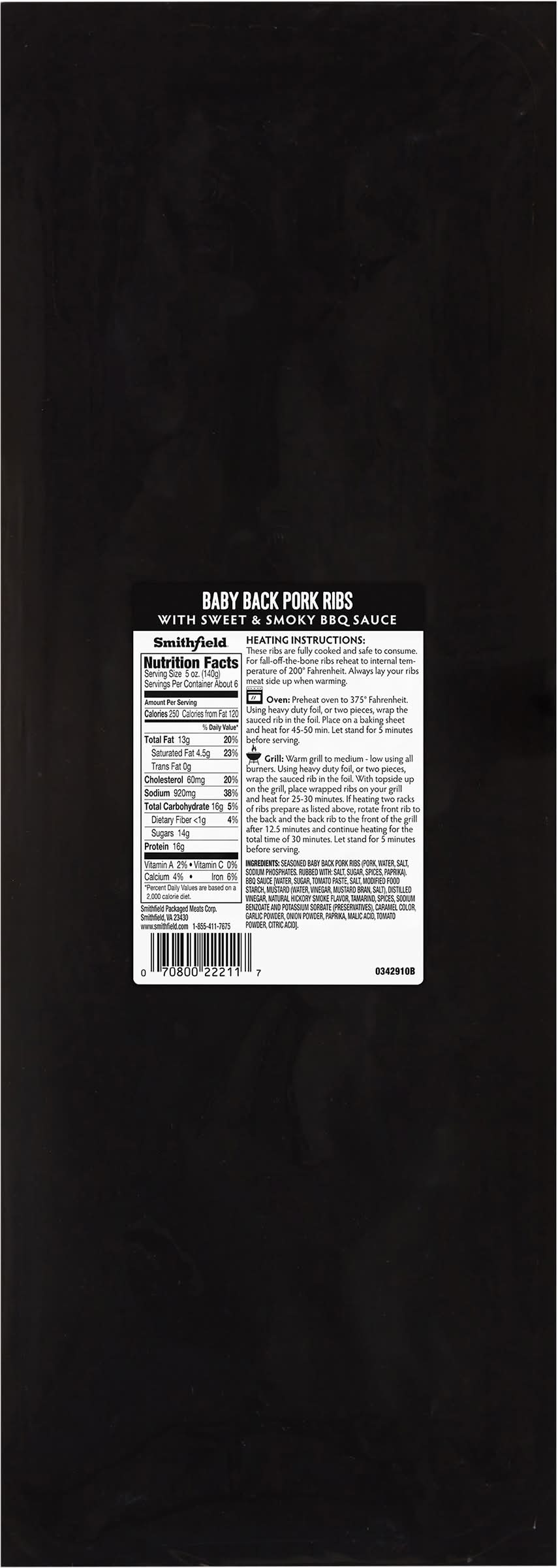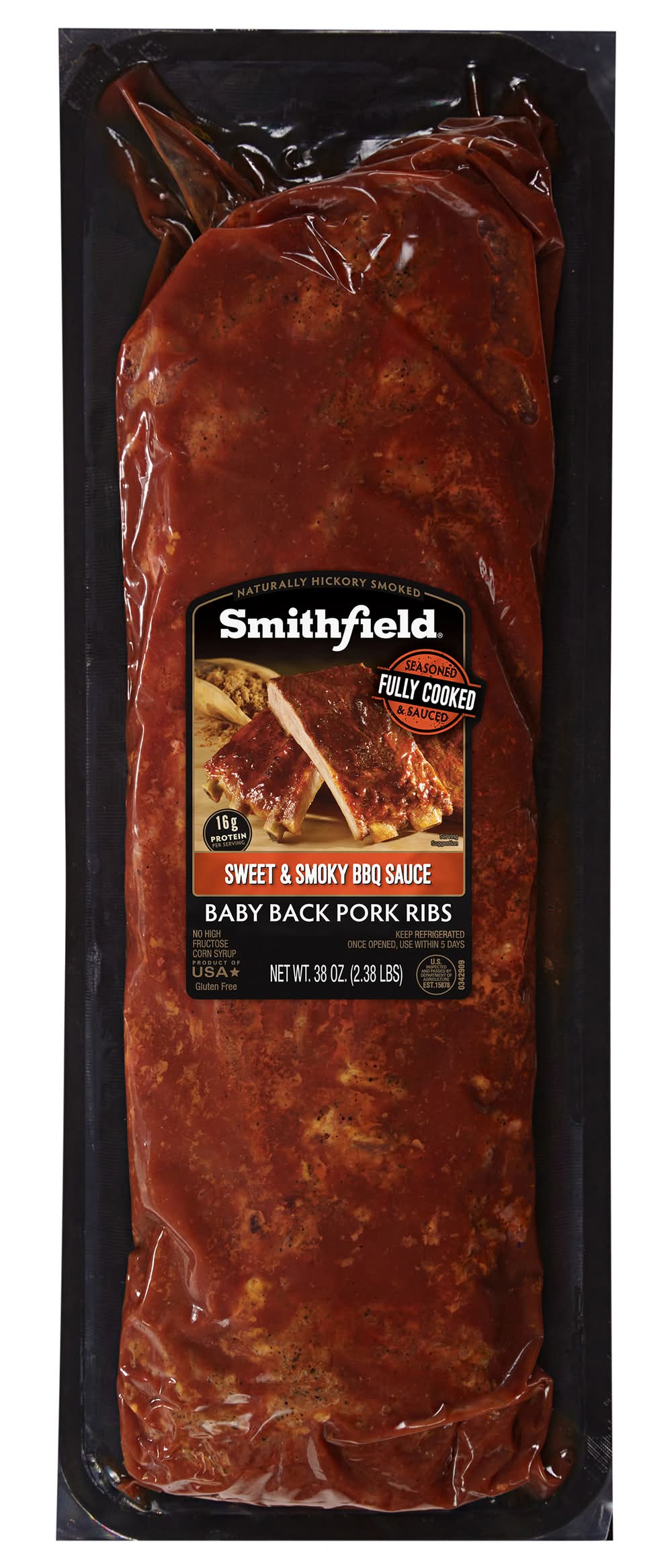 Smithfield Fully Cooked Baby Back Pork Ribs, Sweet & Smoky Bbq Sauce (38 oz)