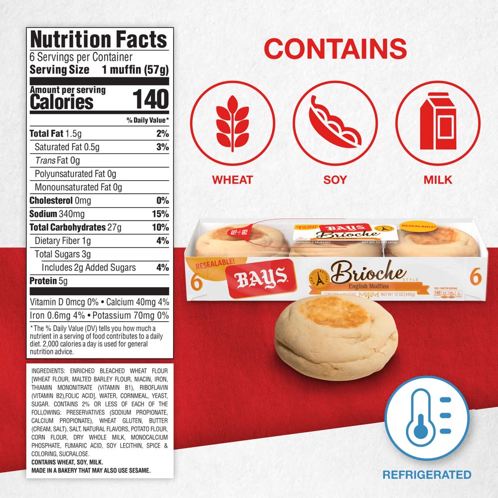Bays Brioche Style English Muffins (6 ct) (12 oz)