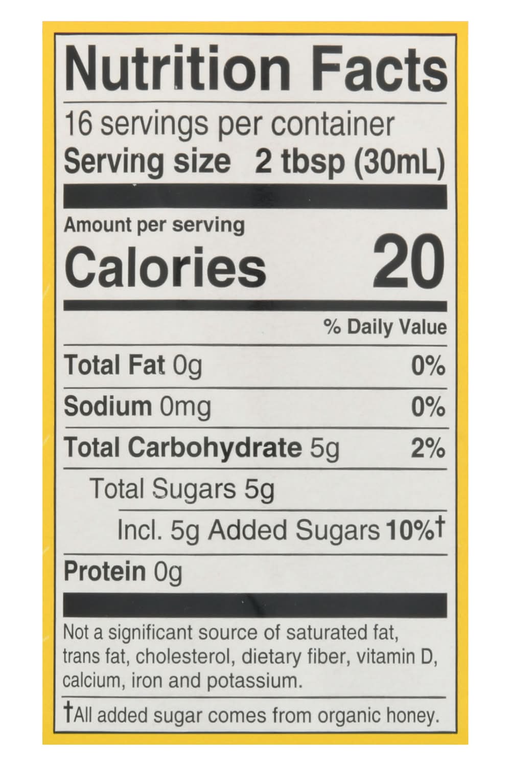 Ingredients: Organic Apple Cider Vinegar, Organic Honey, Organic Lemon Juice, Organic Lime Juice, Water, Organic Ginger Puree, Natural Grapefruit Flavor, Natural Orange Flavor, Organic Ginger Extract Contains: 'Gluten Free From'