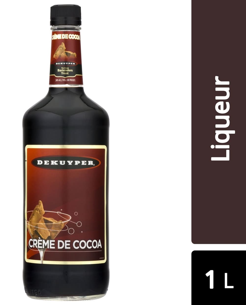 DeKuyper Crème de Cocoa Dark offers all the tempting taste of chocolate in an intensely flavored liqueur. Bring refined cocoa flavor to desserts, pour over ice cream or stir with hot coffee or espresso. Shake it with ice, vanilla vodka and Irish cream for a smooth Chocolate Martini, a dessert and after-dinner cocktail all in one. With a heritage dating back more than 300 years, DeKuyper Cordials & Liqueurs continues to be on the cutting edge of the spirits industry. DeKuyper's evolution has been successful through the combination of its rich, traditional expertise and modern innovation, creating mixable and versatile cordials, liqueurs, crèmes, brandies, and schnapps made from the world's finest ingredients. DeKuyper has been the brand bartenders trust to add color, flavor and fun to any cocktail. Alcohol by volume: 54%