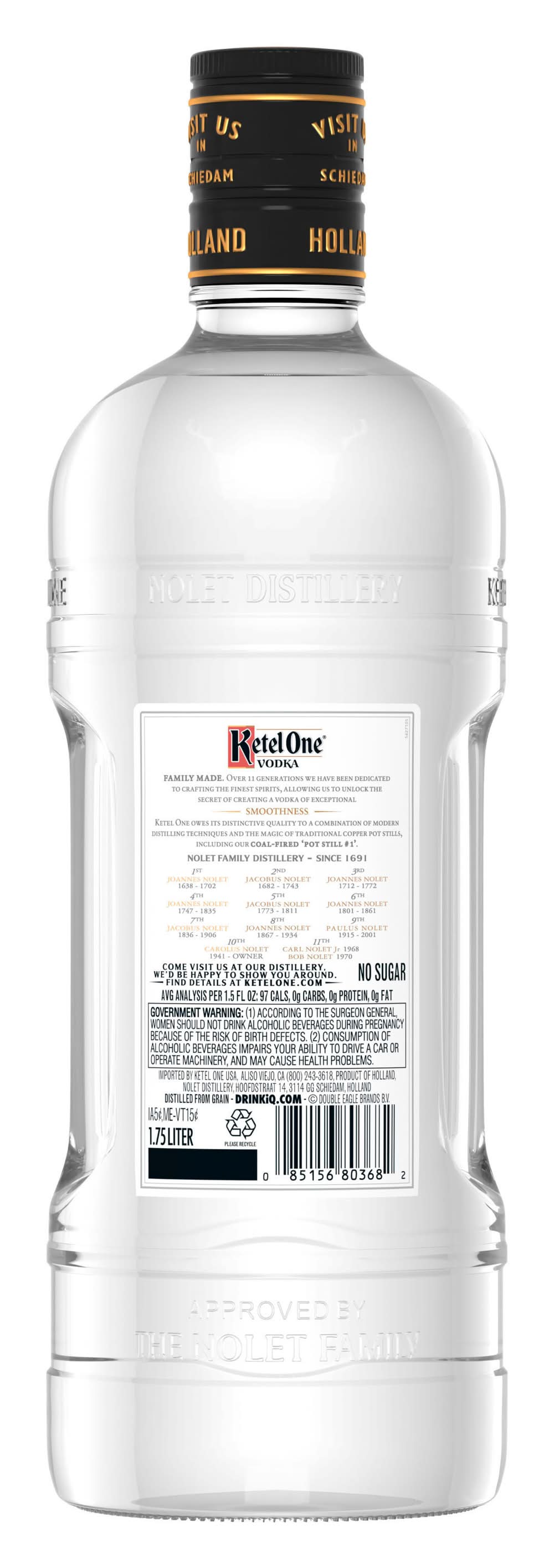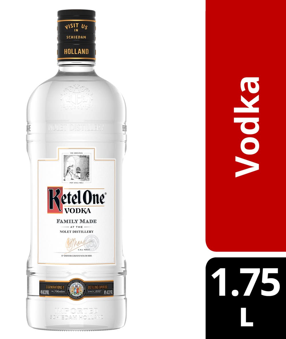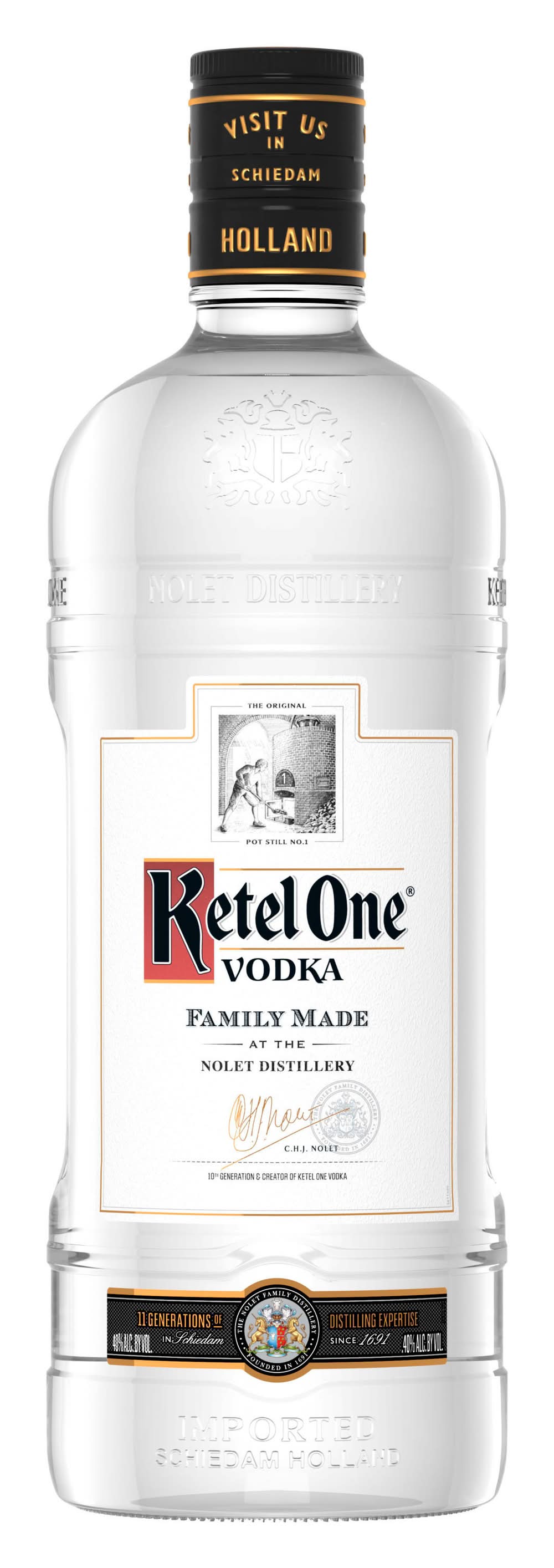 Experience the taste inspired by traditional distilling expertise with Ketel One Family Made Vodka. Our 80 proof vodka is carefully crafted using non-GMO European wheat for smoothness and neutrality. Distilled in copper pot stills, filtered over loose charcoal and stored in lined tanks, our vodka offers a crisp, unique flavor and strong finish. Perfect for any vodka soda. Ketel One Family Made Vodka was recognized as the top-trending vodka at the 2020 Drinks International awards. Includes one 80 proof bottle of Ketel One Family Made Vodka. Please drink responsibly. • Brand: Ketel one • Alcohol by volume: 40% • Packaging: Reusable