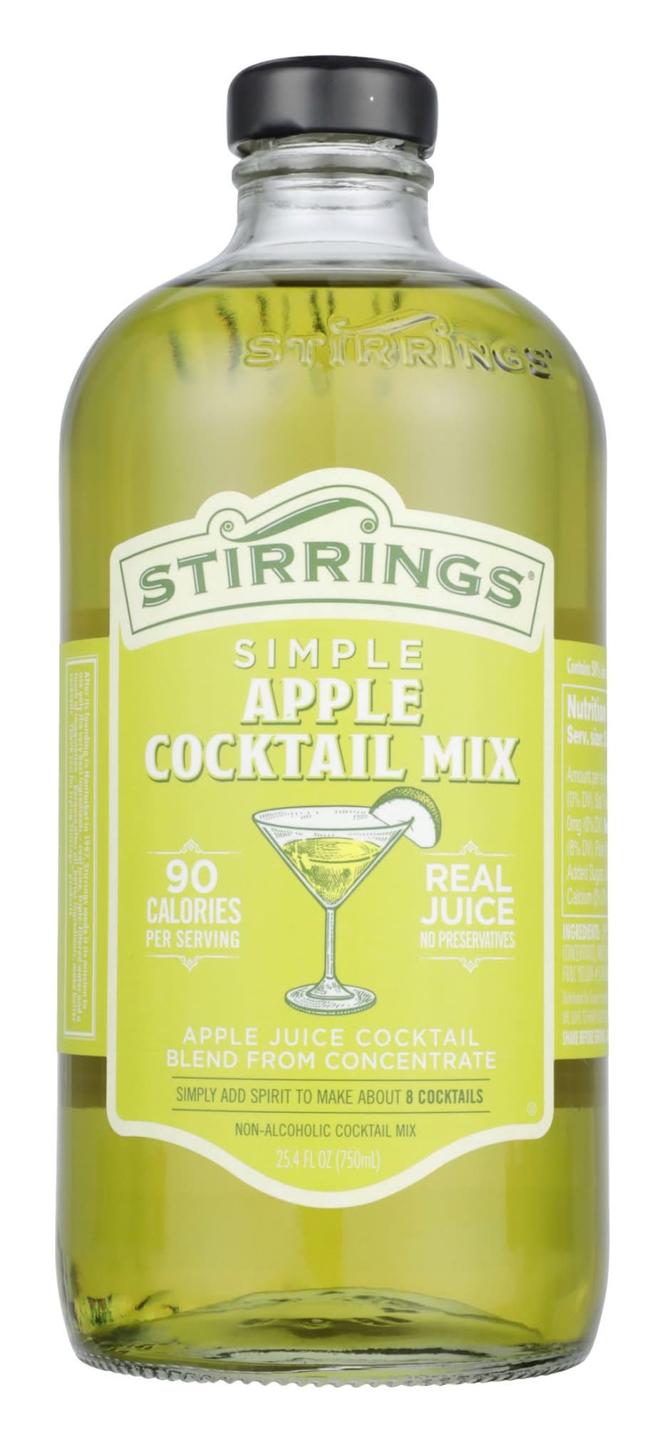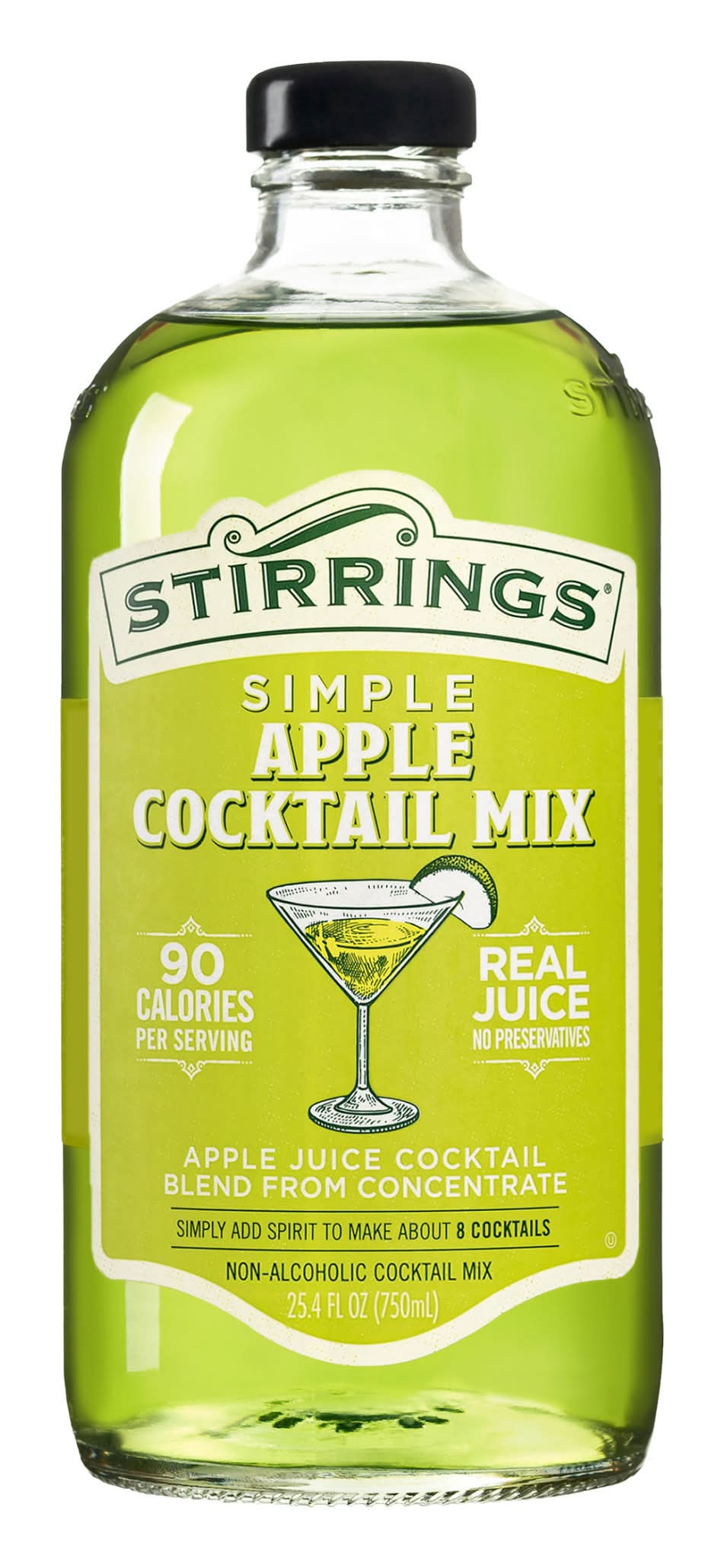 Enhance your drinking experience with Stirrings Apple Cocktail Mix. Stirrings apple cocktail mixer is the first apple martini mix to use real fruit and pure cane sugar for just the right crisp apple flavor. This cocktail mix made with no artificial preservatives, making it perfect for creating tasty alcoholic beverages you can enjoy and feel good about. Add your favorite spirits, from vodka to bourbon to one bottle of alcohol mixer to stir up eight delicious cocktails. Craft apple martinis, bourbon apple cocktails or mix in soda or seltzer water for a virgin cocktail. Store Stirrings apple cocktail mixer in the refrigerator until you’re ready to enjoy remarkable cocktails. With Stirrings non alcoholic cocktail mixers, you can create a variety of tasty cocktails and mixed drinks like 5 Calorie Margaritas, Mojitos, Cosmopolitans and more! Brand: Stirrings
