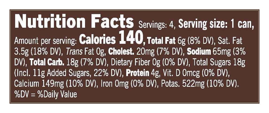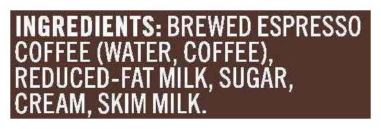 Ingredients: Brewed Espresso Coffee (Water, Coffee), Reduced-Fat Milk, Sugar, Cream, Skim Milk Contains: Milk