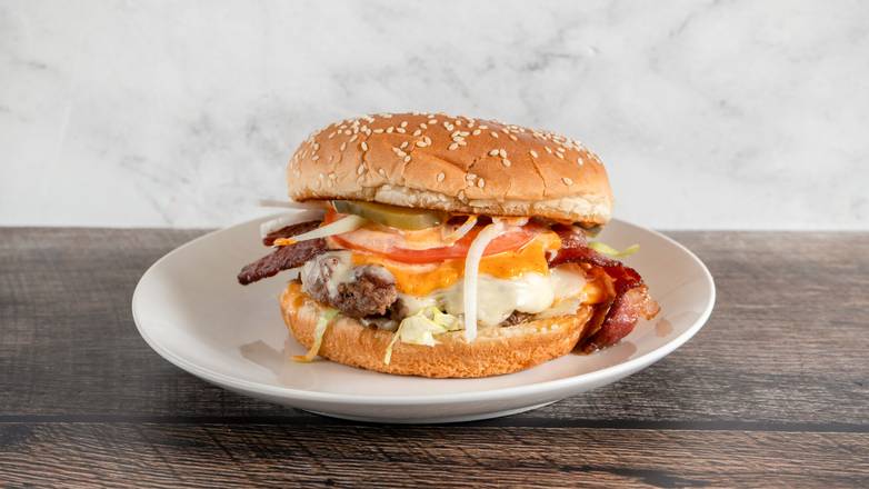 Single patty with bacon your choice of cheese lettuce, tomatoes, grilled onions, pickles, and with our special Xtreme sauce!