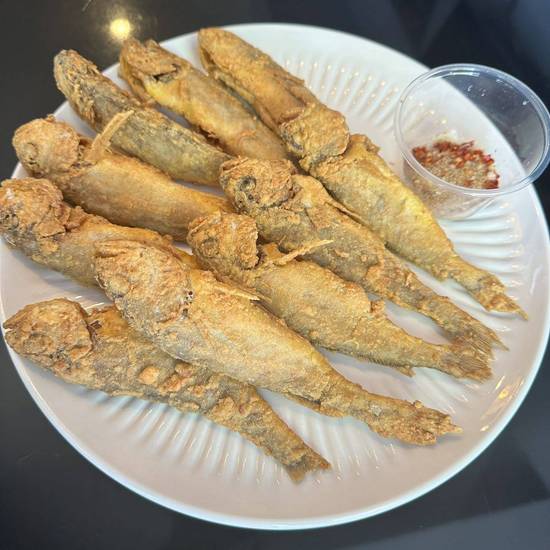 This dish features yellow croaker, marinated and then dry-fried to a crispy golden perfection. The fish is tender inside, with a crispy exterior, retaining its natural flavors and offering a rich, aromatic taste.