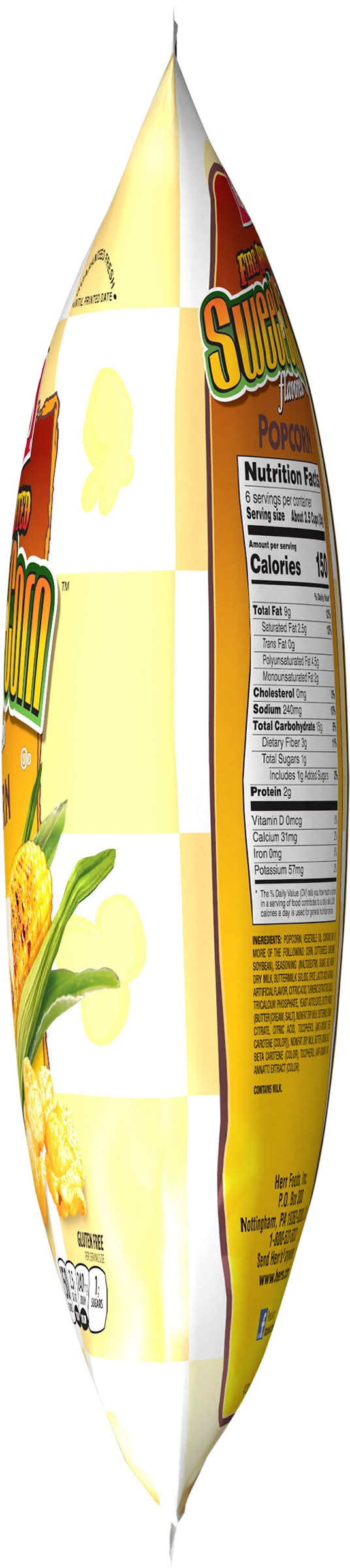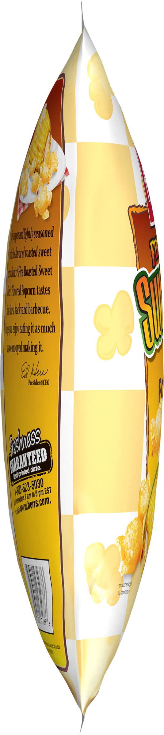 Popcorn, Sweet Corn Flavored, Fire Roasted • Number of servings: 6 • Herr Foods, Inc., Nottingham, PA, 19362, Ph: 800-523-5030