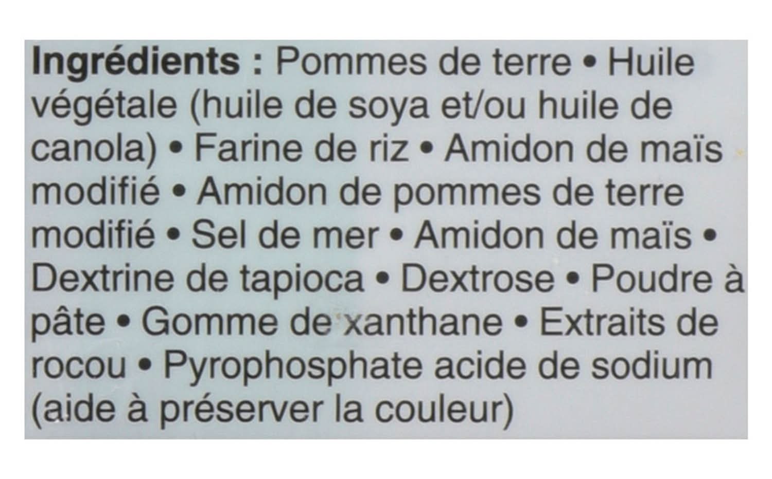 0 g trans fat No cholesterol Low in saturated fat Per serving Proud Canadian company Our Quick Crisp products are great in the oven, but were made for the air fryer, so you can cook your favourites even faster. Size: 650.0 G