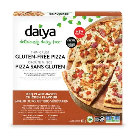 Can pizza night be every night? We've remade our pizzas and flatbreads from scratch, so that every bite is plant based perfection. Our gluten free pizza features a crispy thin crust, melty dairy free cheese made from Daiya Oat Cream™ blend, and just the right amount of toppings. Curb your cravings with a vegan pizza that is dairy free and still delivers incredible taste.Like a backyard BBQ meets a pizza party. This smoky, savory pizza is packed with flavour from BBQ sauce, plant-based chicken flavoured shreds, roasted tomato, red onion, and parsley. And of course, it's topped with gooey dairy free, vegan mozzarella cheese. Grab your folding chair - everyone's invited.MADE WITH DAIYA OAT CREAM™ BLEND - Love cheese, but not the way it makes you feel? We harnessed the power of plants - specifically, gluten-free oat - so you'll get all the creamy, melt-your-heart flavour you love...without compromising.MELTS LIKE A DREAM - Dairy free cheese that’s perfectly melty, every time.DELICIOUSLY CRISPY CRUST - Came for the dairy free cheese, stayed for the crispy, crunchy gluten free pizza crust.IRRESISTIBLE PLANT-BASED TOPPINGS - Delicious toppings are non-negotiable around here. Our vegan pizzas are Certified Plant-Based and contain no animal products or by-products. Size: 433.0 G