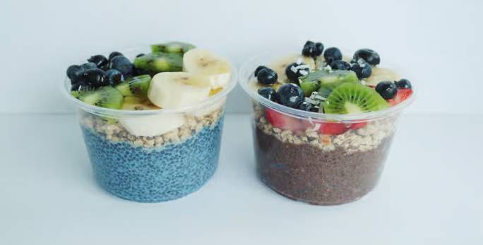Vanilla chia pudding as the base and topped like your favorite yumberry bowl. Available in kids' sizes (8 ounces) and small (16 ounces). A bowl with chia pudding at the base. Delicious. Choose any bowl toppings and choose from chocolate and vanilla chia pudding.