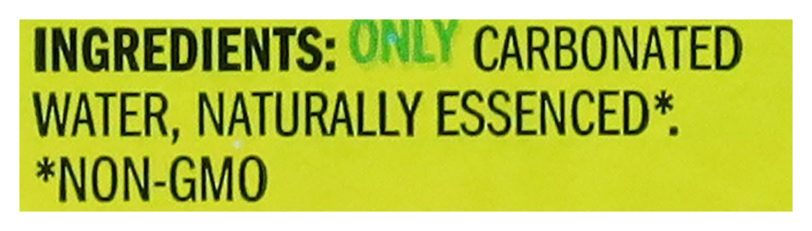 Ingredients: Only Carbonated Water, Naturally Essenced (Non-GMO)