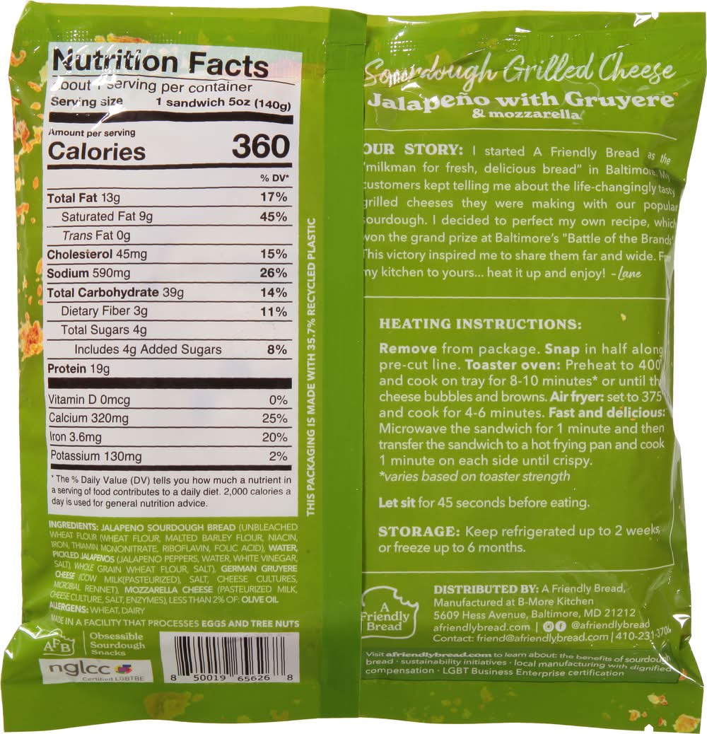 A Friendly Bread Sourdough Grilled Cheese Sandwich, Jalapeño Gruyere-Mozzarella (5 oz)