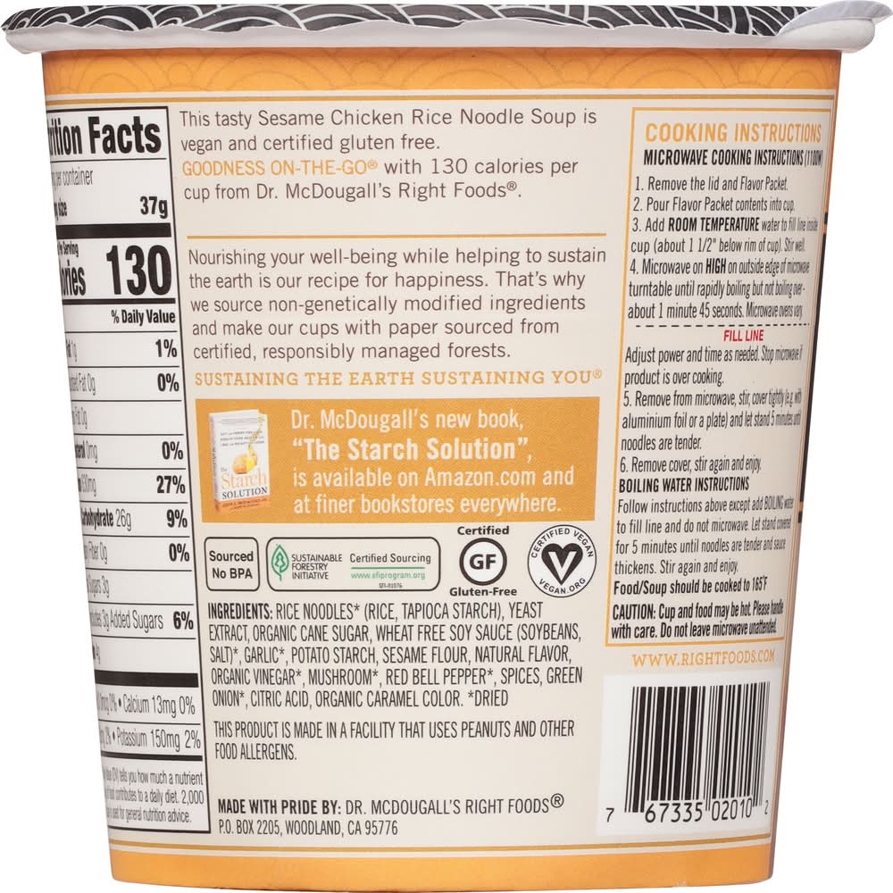 Rice Noodles, Sesame Chicken Flavor Dr. McDougall's Right Foods, PO Box 2205, Woodland, CA, 95776