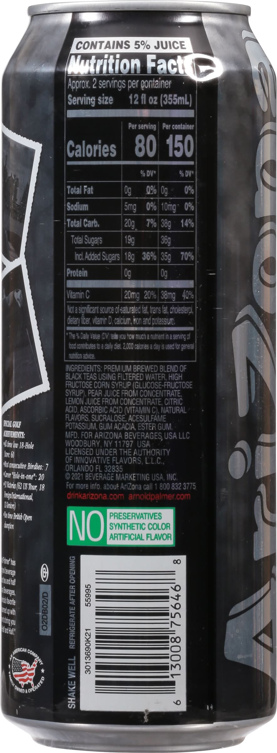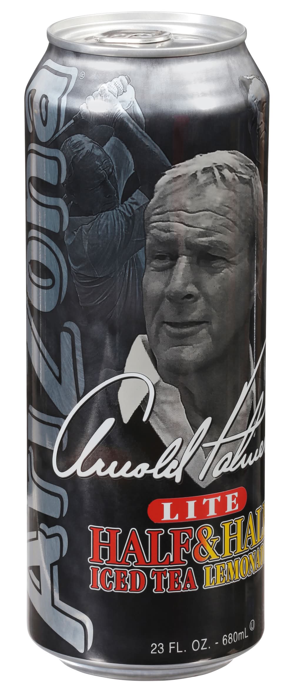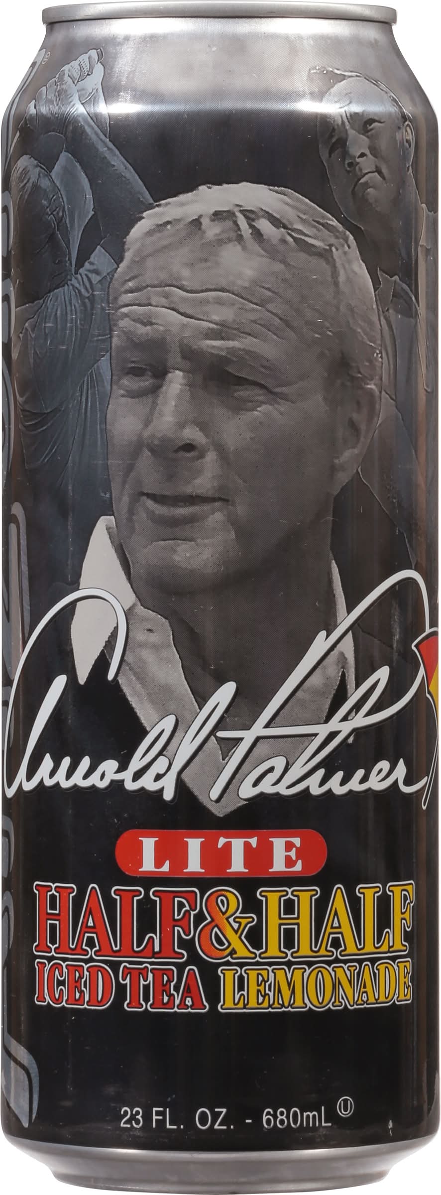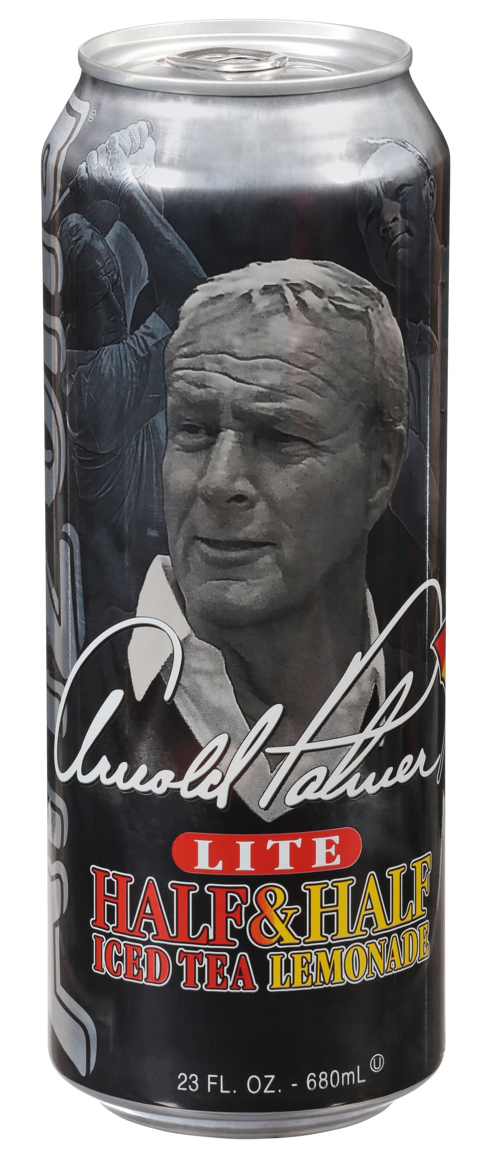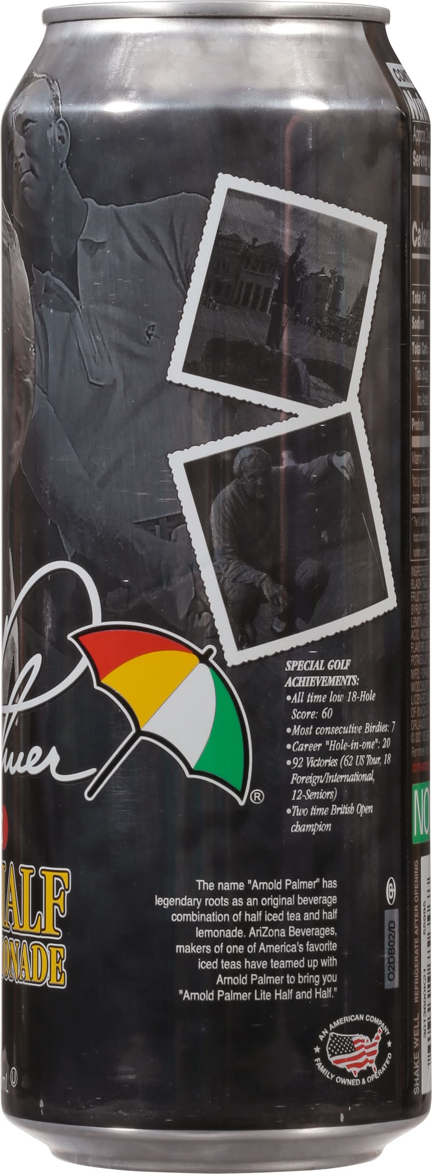 No artificial flavor. Natural No preservatives. No synthetic color. Special golf achievements: All time low 18-hole score:60. Most consecutive. Birdies:7. Career hole-in-one:20. 92 victories (62 US tour, 18 foreign/international, 12-seniors). Two time British open champion. The name Arnold palmer has legendary roots as an original beverage combination of half iced tea and half lemonade. Arizona beverages makers of one of America favorite iced teas have teamed up with Arnold palmer to bring you Arnold palmer lite half and half. drinkarizona.com. arnoldpalmer.com For more information about AriZona call 1-800-832-3775. An American company. Family owned & operated. Flavor: Lemonade